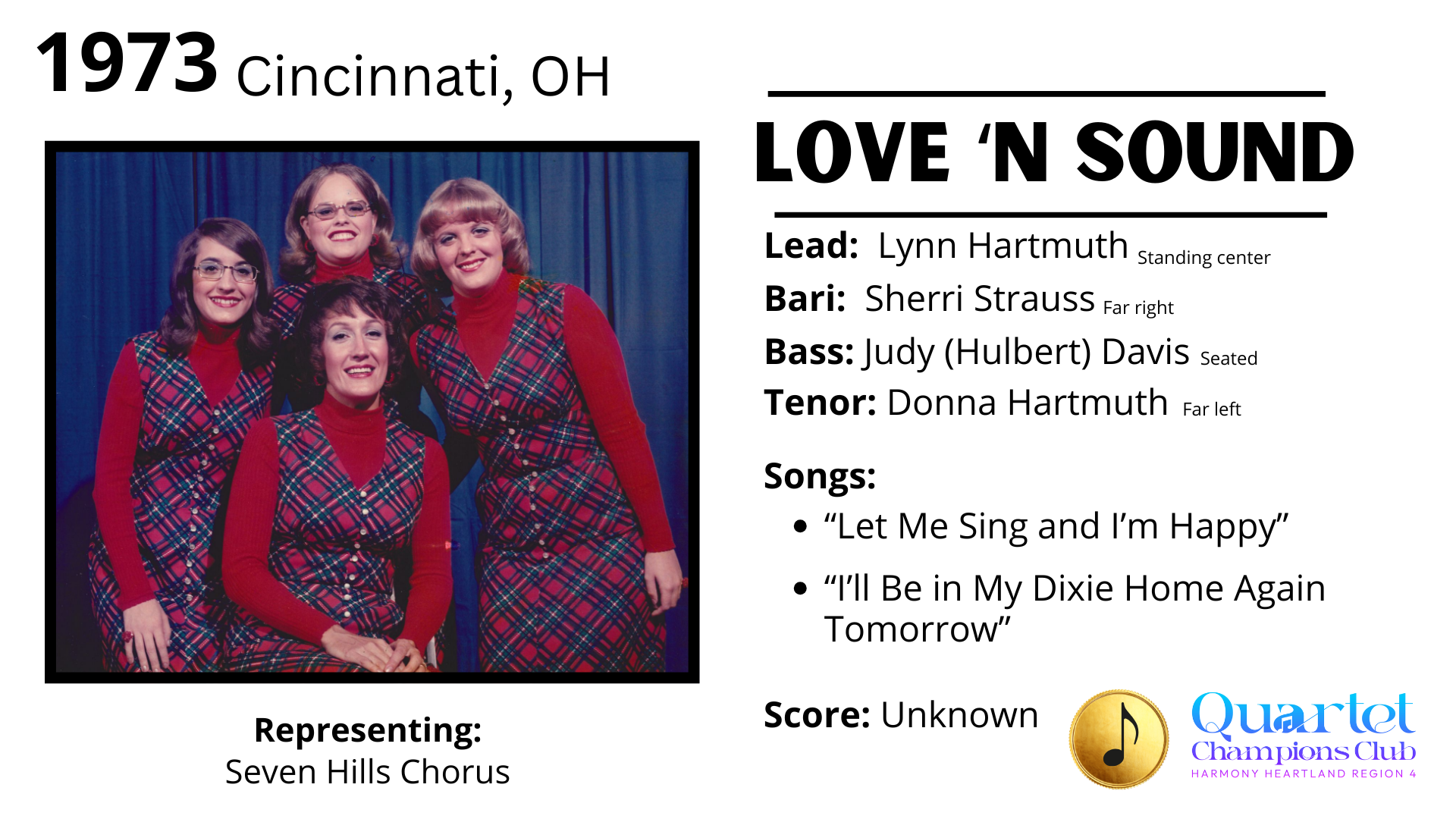 We are working on finding photos of these quartets during their winning season as we've done for the Region 4 champs. If you have these photos in your archives, please send to [email protected].